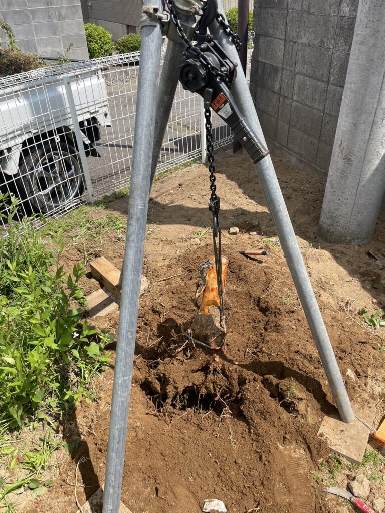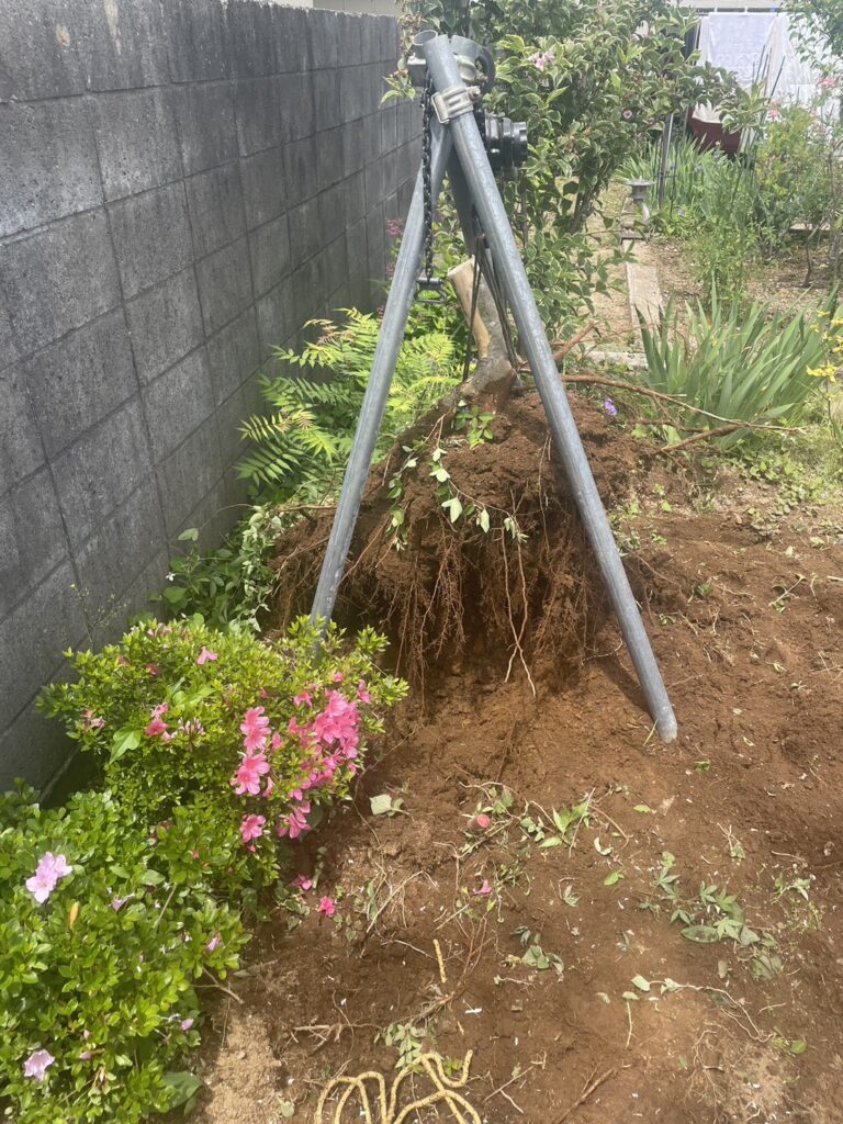 作業スペースの狭いところで、木の根を除去してほしいと伐根のご依頼を頂きました。