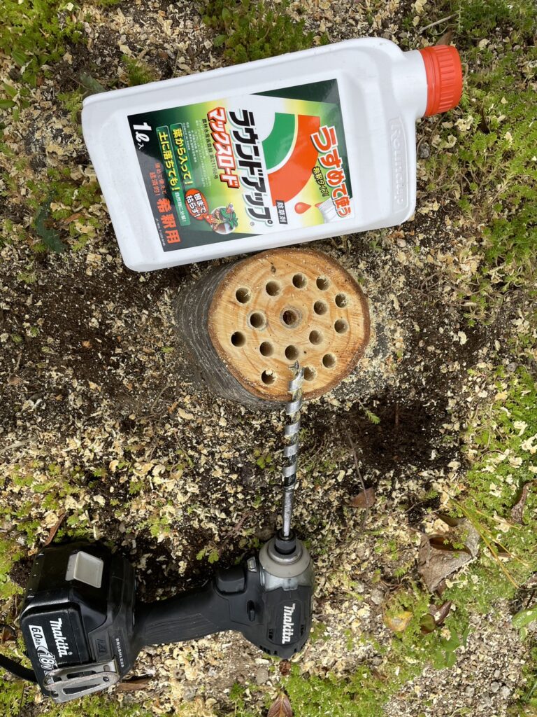 その他にも、切り株に穴を空けて除草剤を投入し、根を弱らせていく方法もあります。